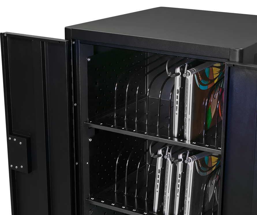 Internally spacious enough to store 36 devices, yet sleekly designed externally to fit in the most confined spaces. Have a small classroom? No worries, this charging cart solution is ideal for tight areas.